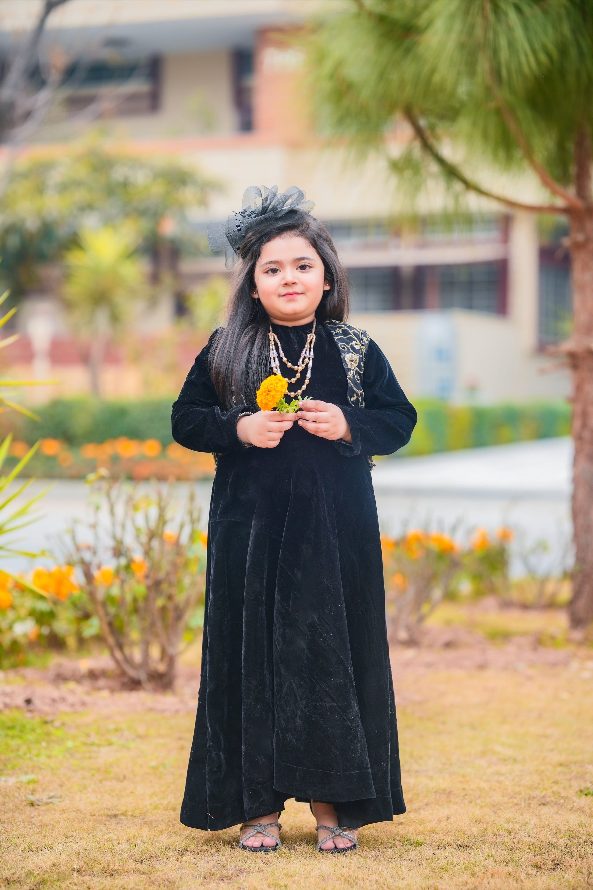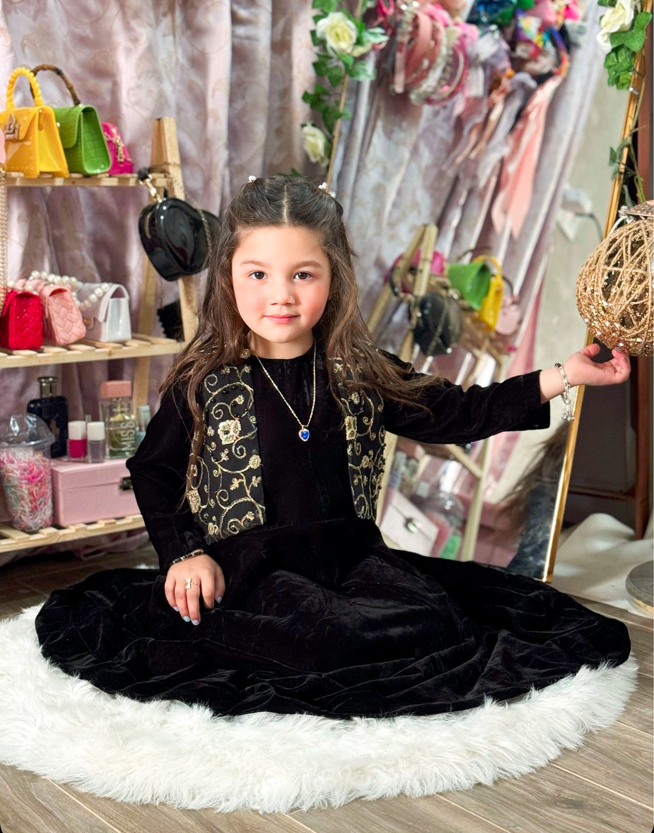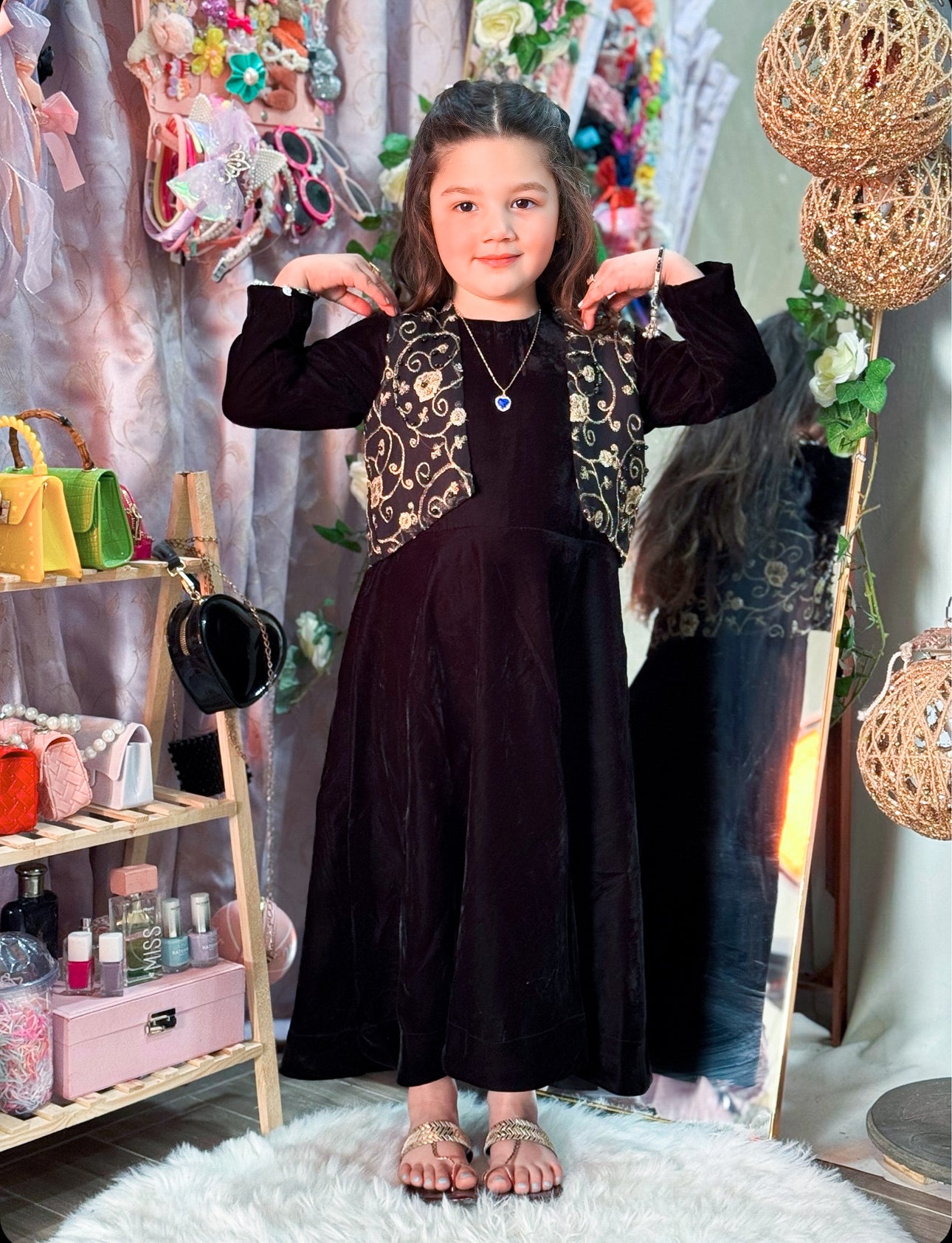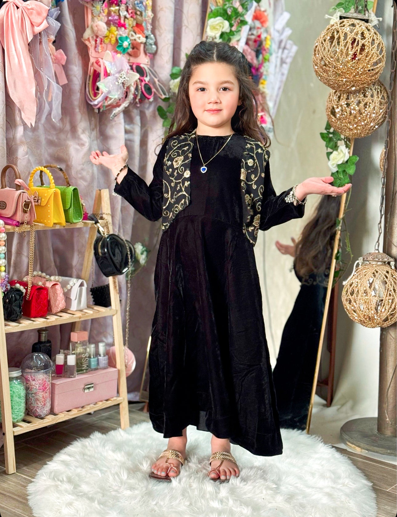 Black Velvet Frock with Embroidered Jacket