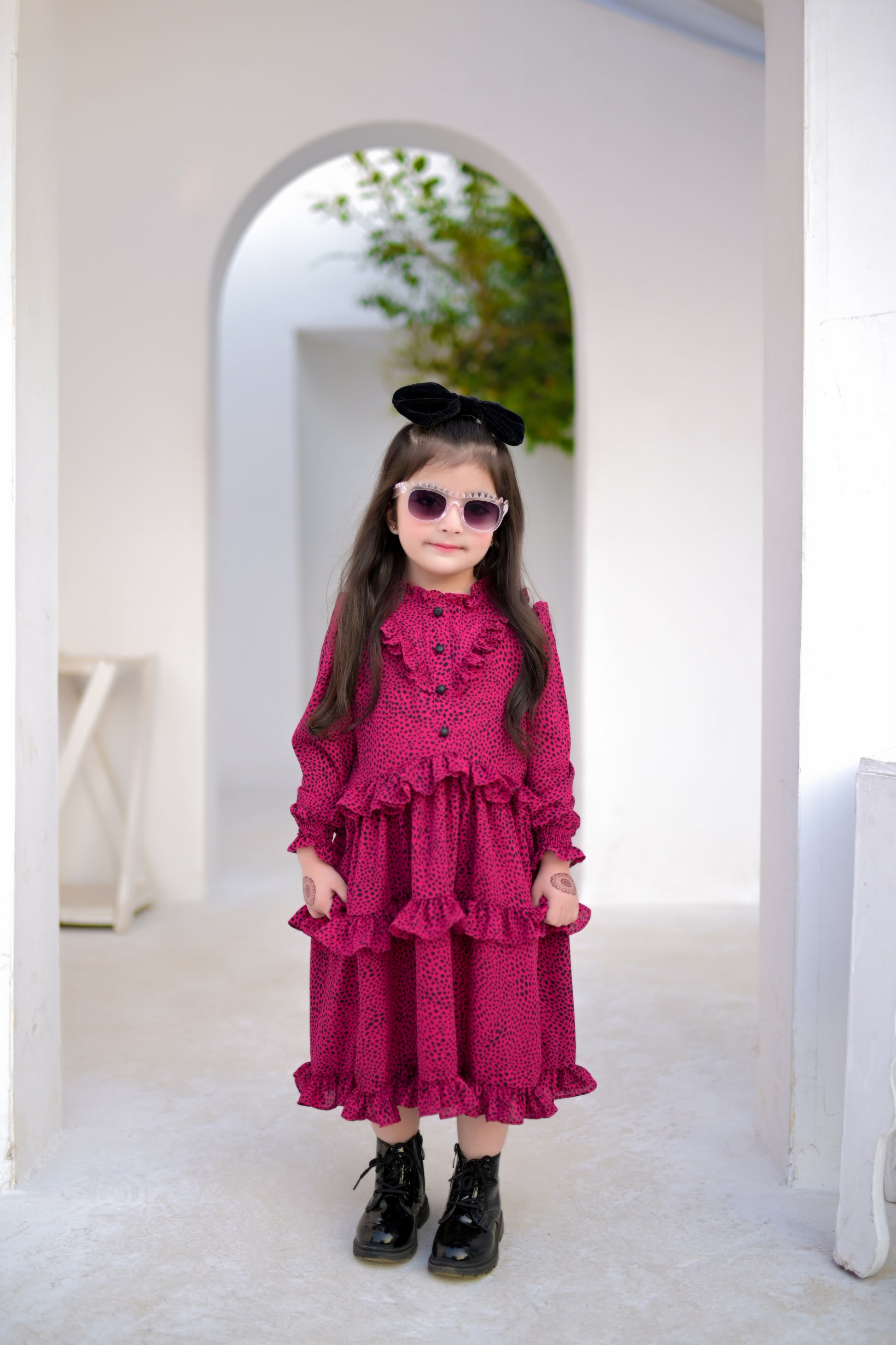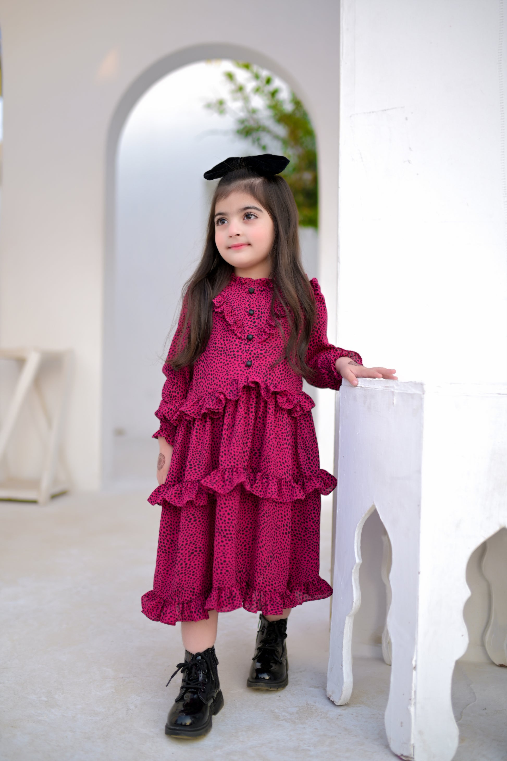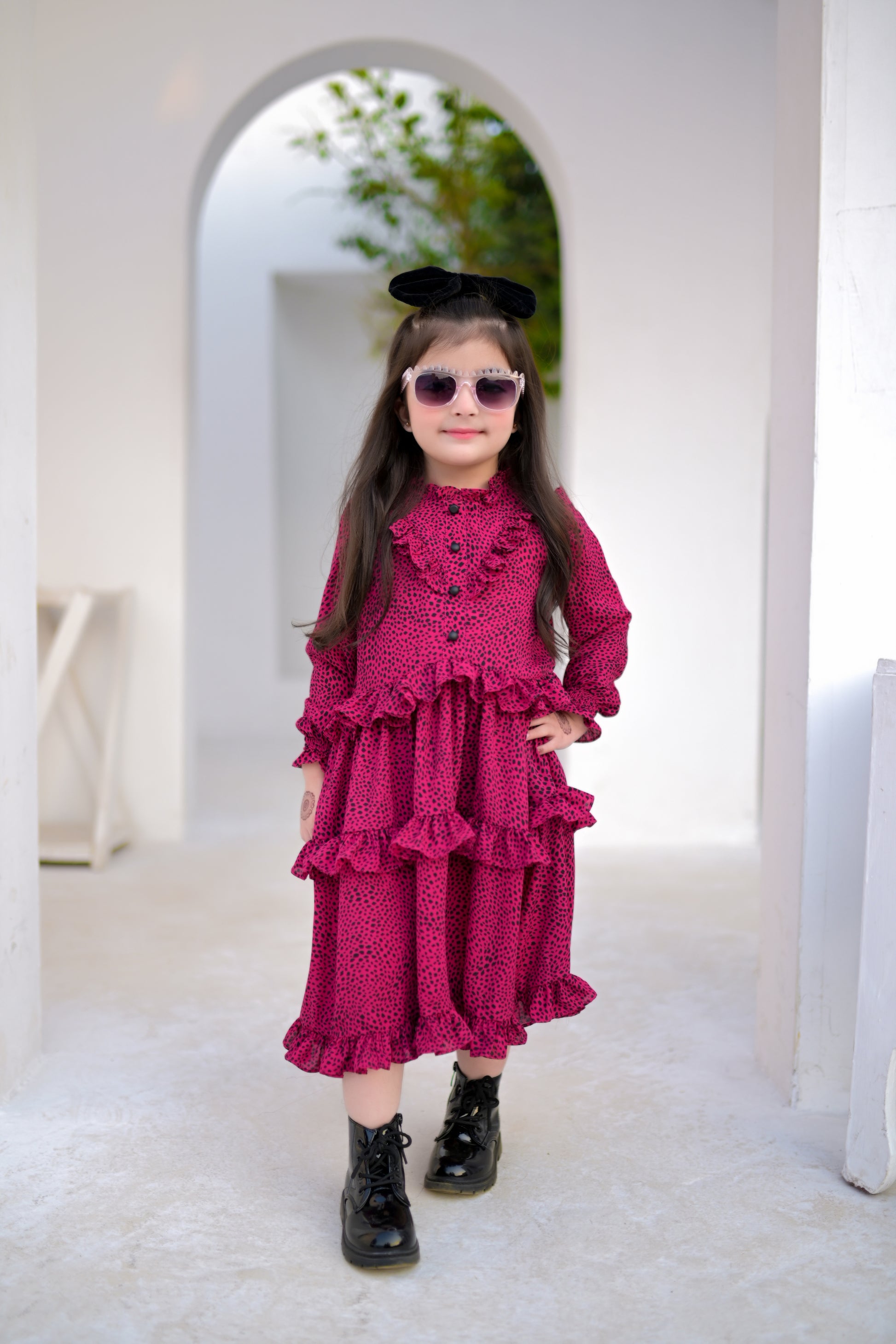 Stitched Casual Shocking Pink Frock for Girls (age 2 to 10): This vibrant frock is designed for style and comfort, making it perfect for casual outings or special events. It features intricate embroidery, adding a touch of elegance to every twirl. The breathable fabric ensures easy movement, while the modern yet traditional design makes it ideal for festive occasions, or special gatherings. A must-have outfit for every little fashionista!